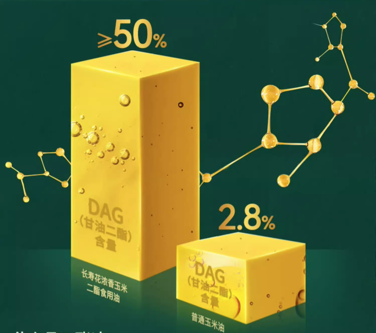 二酯食用油替換傳統(tǒng)食用油,是順應(yīng)健康趨勢(shì)的新選擇。二酯油的品質(zhì)取決于食用油中甘油二酯的含量,占比越高,更具健康屬性。長(zhǎng)壽花DAG二酯食用油,在風(fēng)味方面與傳統(tǒng)食用油相同,不需要改變飲食習(xí)慣,就能降低傳統(tǒng)食用油中“甘油三酯”帶來(lái)的健康風(fēng)險(xiǎn),滿足大家的健康需求,是更具價(jià)值的健康選擇!